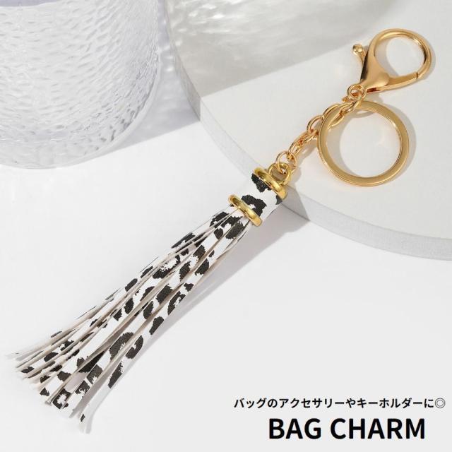 バッグチャーム キーホルダー キーリング タッセル フリンジ ナスカン ヒョウ柄 レザー調 フェイクレザー バッグアクセサリー