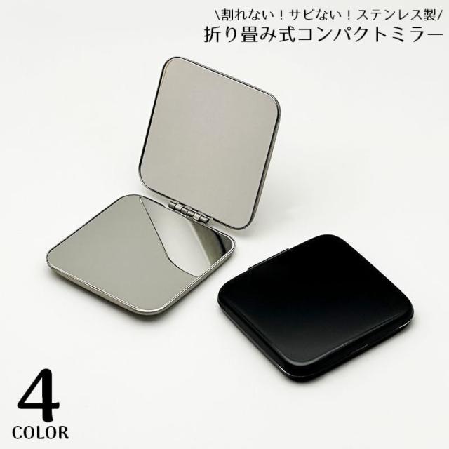 コンパクトミラー ハンドミラー 手鏡 割れない 折りたたみ 両面 スクエア 四角形 ミニ 軽量 小型 携帯便利 メイク 化粧直し
