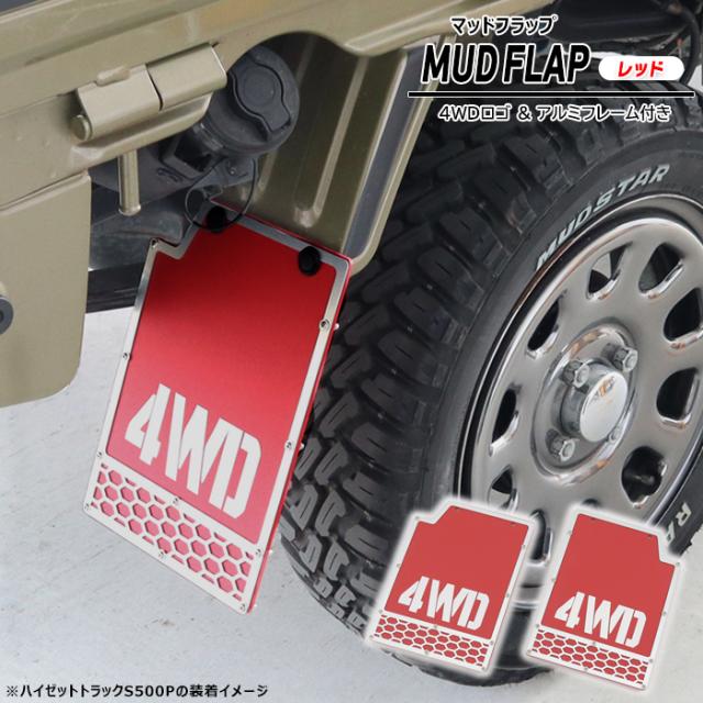 三菱 ミニキャブトラック U61T U62T マッドフラップ リア 左右セット アルミフレーム付き レッド 新品 泥除け マッドガード 4WDロゴ 外装 カスタムパーツ オフロード 軽トラ