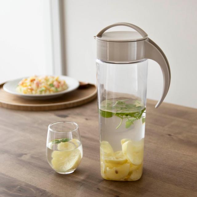 ピッチャー 1.9L スリムジャグ ( 麦茶ポット 冷水筒 冷水ポット 耐熱 横置き 大容量 洗いやすい 冷蔵庫 ポケット 日本製 広口 持ちやすい おしゃれ 倒して 寝かせて 置ける 冷茶ポット )