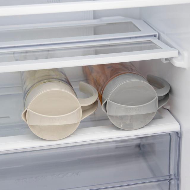 水漏れを防ぐパッキン付きでしっかり密封してくれるので、横向きに置けて、冷蔵庫の棚置きが可能です。冷蔵庫の空いたスペースを有効利用できます。