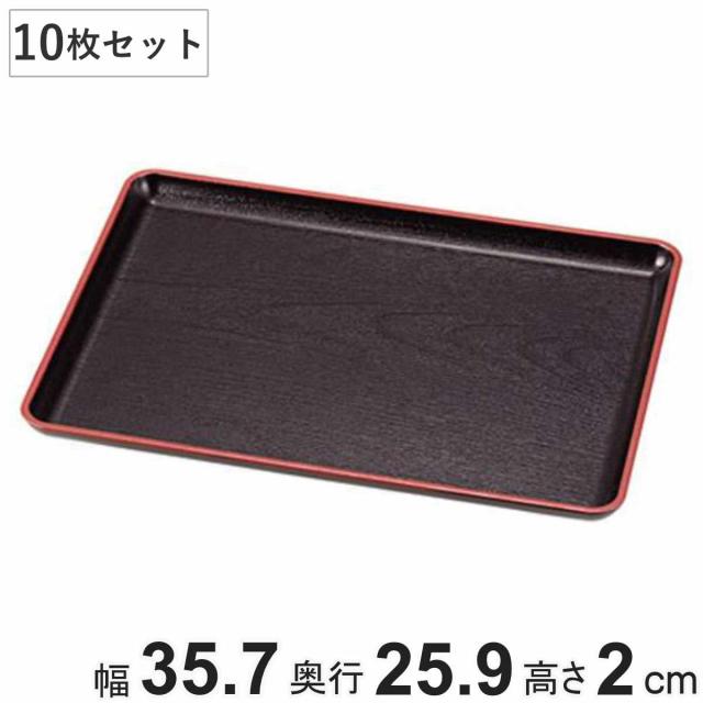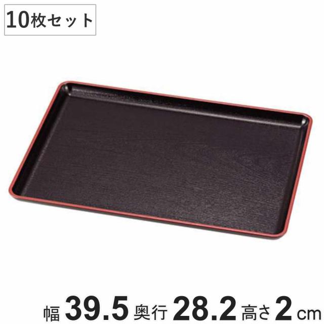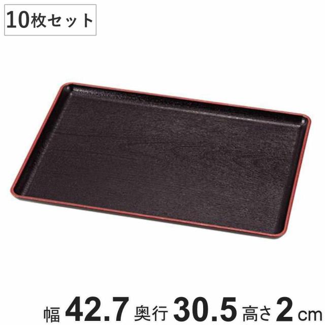 お盆 43×31cm トレー 長盆 恵比寿盆 黒天朱 尺4寸 日本製 10枚セット ( トレイ 和菓子 和食器 菓子皿 和風 おしゃれ シンプル 角型 プラスチック ウレタン塗装 脇取盆 )