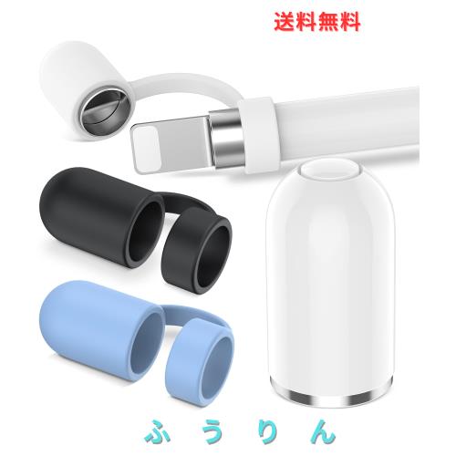 セット内容: Apple Pencilキャップ本体 1個、キャップホルダー 3個, カラー:ホワイト/ブラック/ブルー, 材質:キャップ本体:ABS キャップホルダー: シリコン
