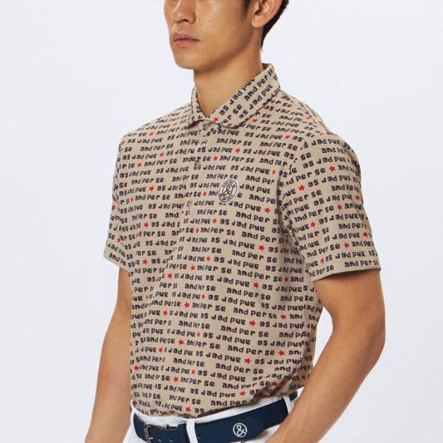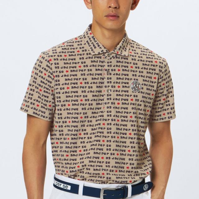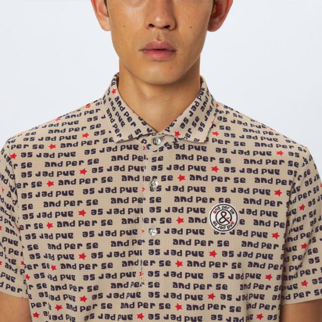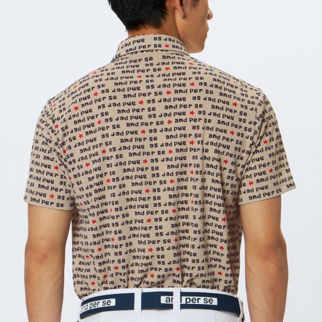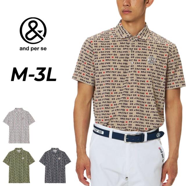 アンパスィ 半袖シャツ 衿つき メンズ ゴルフウェア and per se GOLF ソルケアドットプリンテッド|遮熱 ストレッチ UVカット 吸汗速乾 男性用 ゴルフポロ 総柄 ゴルフシャツ トップス 半そで メンズウエア 紳士 服 ブランド アパレル/AMF9615X7