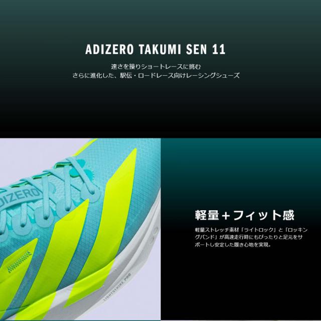 アディダス ランニングシューズ メンズ adidas アディゼロ タクミ セン 11 レーシングシューズ マラソン ショートレース 駅伝 陸上|軽量 ひも靴 厚底 ローカット 男性用 スポーツシューズ ブランド Adizero Takumi Sen 11 くつ/NNO00