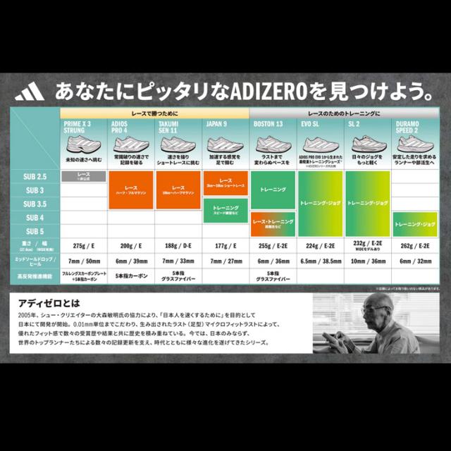 個人記録を狙うランナーのために、軽量化されたレーシングシューズ。