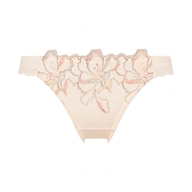 ●優しくしなやかな印象の大花のエンブロイダリーレース(刺繍レース)をフロントに使用し、動きのある花びらのスカラが目を引きます。