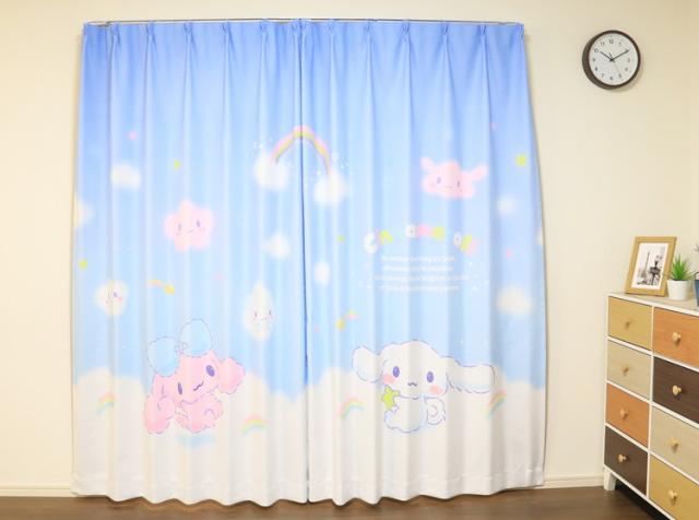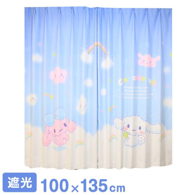 MORIPiLO サンリオ 遮光カーテン 幅100x135cm丈 2枚組 シナモロール (絵羽柄 つながる一枚絵アートカーテン) 洗える 可愛い グッズ sanrio シナモン ブルー キャラクター(代引不可)【送料無料】