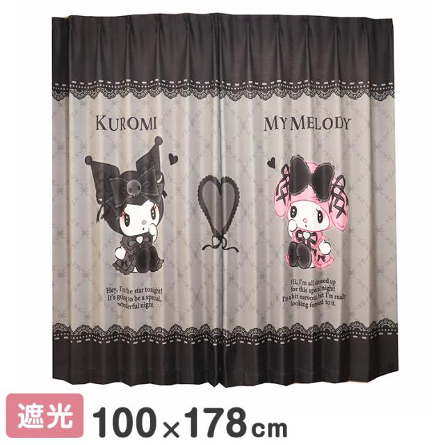 MORIPiLO サンリオ 遮光カーテン 幅100x178cm丈 2枚組 マイメロディ クロミ 真夜中のメロクロ (絵羽柄 つながる一枚絵アートカーテン) 洗える 可愛い グッズ sanrio キャラクター(代引不可)【送料無料】