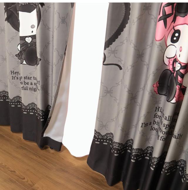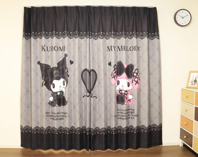 MORIPiLO サンリオ 遮光カーテン 幅100x200cm丈 2枚組 マイメロディ クロミ 真夜中のメロクロ (絵羽柄 つながる一枚絵アートカーテン) 洗える 可愛い グッズ sanrio キャラクター(代引不可)【送料無料】