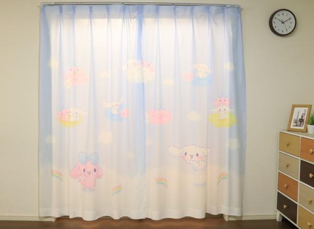 MORIPiLO サンリオ レースカーテン 幅100x133cm丈 2枚組 シナモロール (絵羽柄 つながる一枚絵アートカーテン) 洗える 可愛い グッズ sanrio シナモン ブルー キャラクター(代引不可)【送料無料】