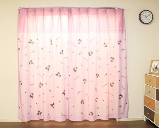 MORIPiLO サンリオ レースカーテン 幅100x176cm丈 2枚組 マイメロディ クロミ 真夜中のメロクロ (絵羽柄 つながる一枚絵アートカーテン) 洗える 可愛い グッズ sanrio(代引不可)【送料無料】