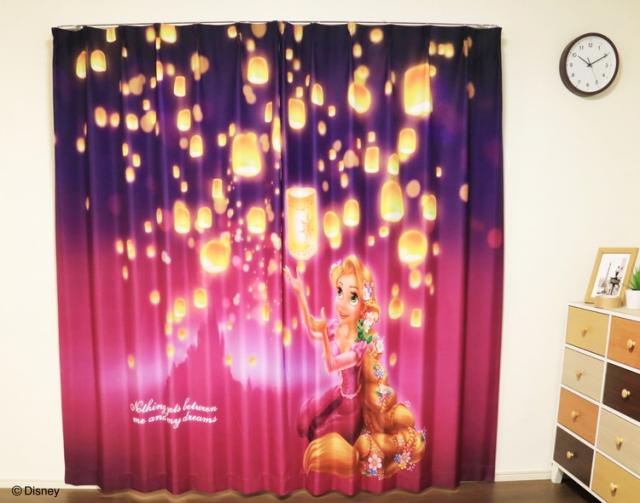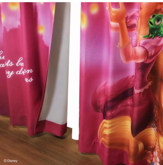 MORIPiLO ディズニー 遮光カーテン 幅100x135cm丈 2枚組 ラプンツェル (絵羽柄 つながる一枚絵アートカーテン) 洗える 可愛い グッズ パープル Disney プリンセス キャラクター(代引不可)【送料無料】