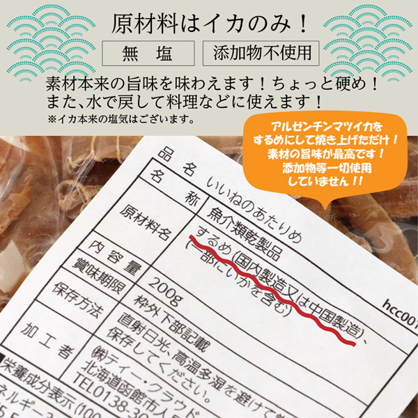 おつまみ 珍味 いいねのあたりめ 200g 送料無料 イカ珍味 無塩 素材そのままの旨み スルメイカ するめ あたりめ スルメ 訳あり 宅飲み 家飲み 新鮮なスルメイカを直火で焼き上げました お酒のおつまみ 北海道いいねマーケット【ym_np】