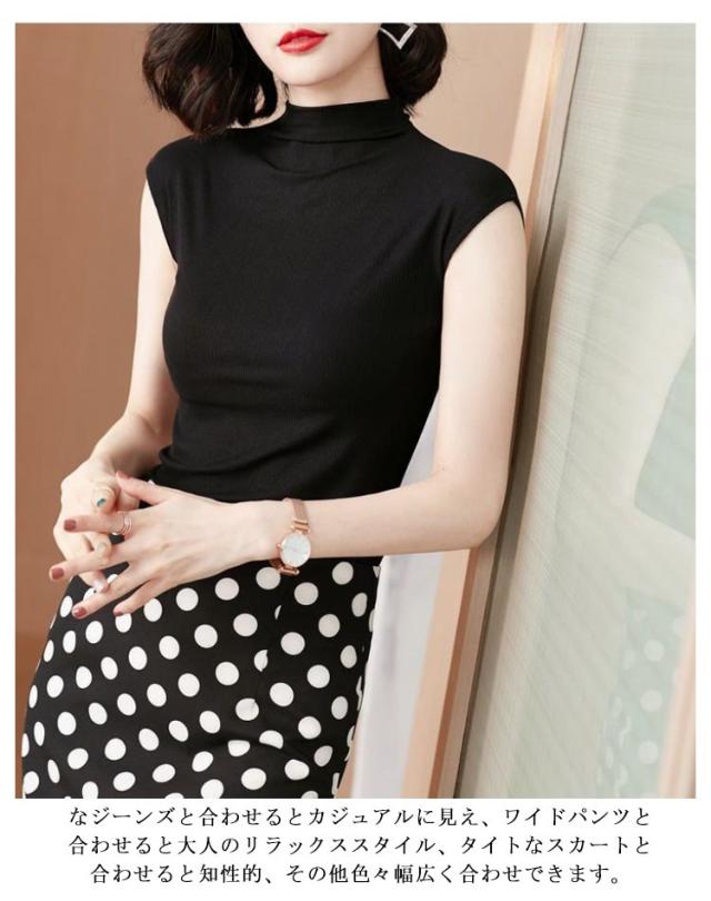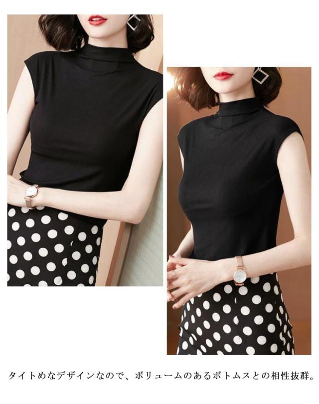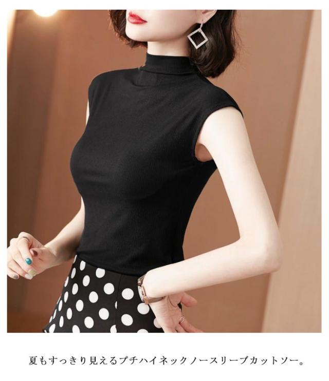 ノースリーブtシャツ レディース 春 夏 ハイネック ノースリーブ カットソー 伸縮性 トップス Tシャツ 無地 ノースリーブトップス tシャツ 軽量 カジュアル 薄手 シンプル ハイネックカットソー シンプル おしゃれ 女性 春夏 部屋着 通勤