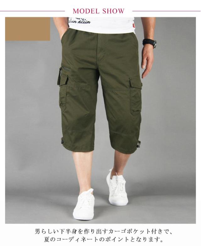 クロップドカーゴパンツ 7分丈 クロップドパンツ メンズ カーゴパンツ ハーフパンツ ストレッチ 夏用 チノパン 七分丈 ひざ下 カーゴ 短パン ショーパン ミリタリー ズボン チノパン ゴルフ カジュアル 夏 接触冷感 ドライ 速乾