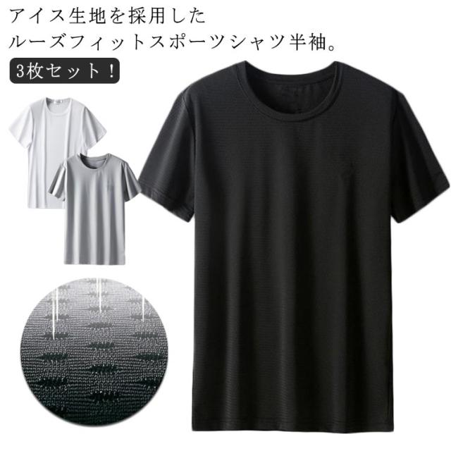 クール 接触冷感 メンズ ひんやりTシャツ tシャツ 半袖 送料無料 冷却Tシャツ レディース 3枚セット 吸汗速乾 クールTシャツ ジム スポーツ 白 ジョギング ランニング スーツ ウェア ゴルフ シャツ サッカー インナー 春物 夏 秋 丸首 黒 tシャツ 送料無料