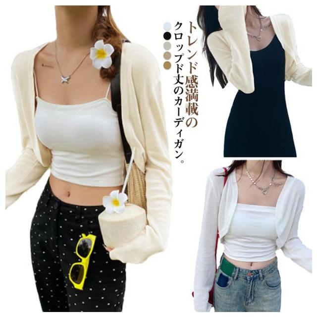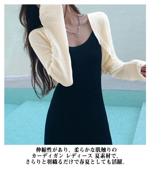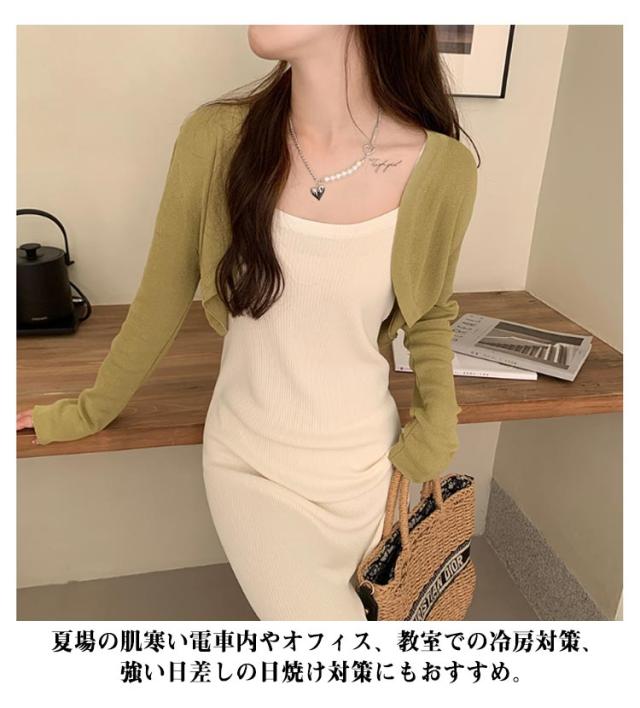 全5色 ボレロ クロップド カーディガン 薄手 ショート丈 レディース サマーニット 長袖 羽織り ボレロカーディガン きれいめ 春 夏 日焼け防止 冷房対策 無地 オフィス カジュアル 通勤通学 体型カバー 軽量 トップス