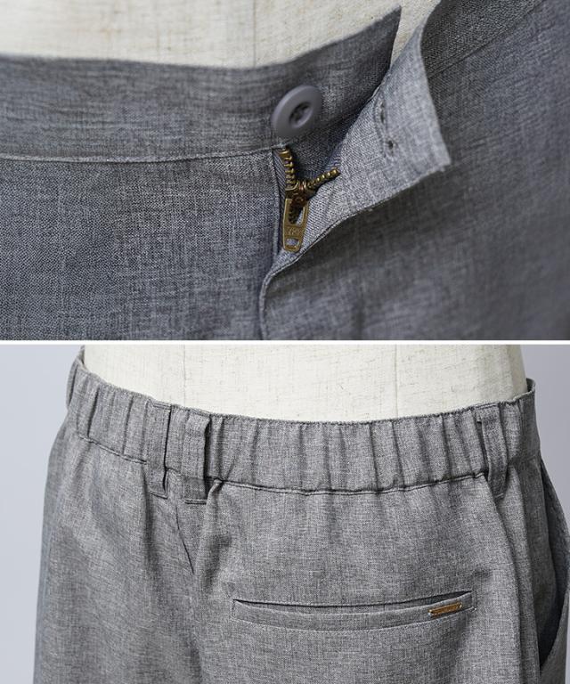 ウエストはベルトループ付きでしっかりとした見た目を保ちつつ、