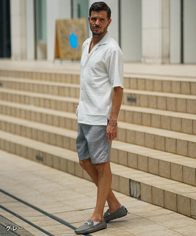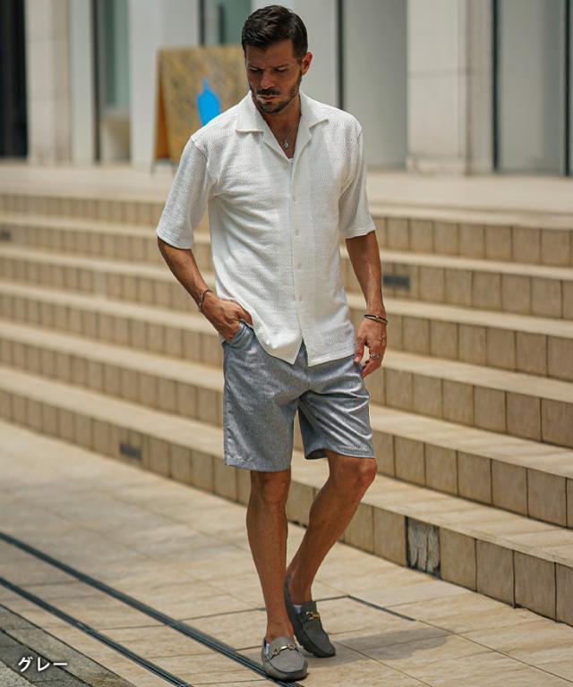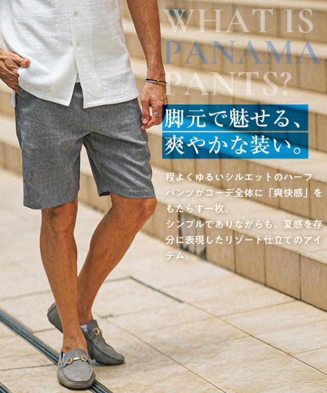接触冷感 ハーフパンツ メンズ 膝上 短め ショートパンツ メンズ 短パン 半ズボン ショーツ イージーパンツ ストライプ パンツ パナマ ホワイト 薄手 夏 新作 夏服 夏物 春夏 メンズファッション リゾート ちょいワル お兄系