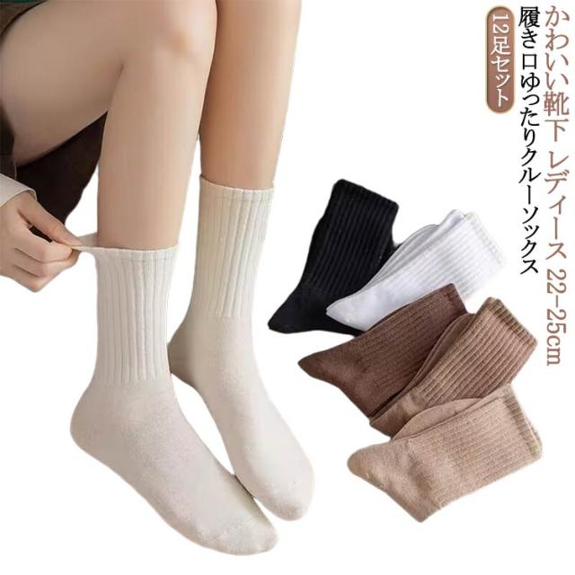 靴下 ソックス 12足組 ソックス レディース 靴下 レディース シンプル カラフル ソックス おしゃれ 綿 クルーソックス カジュアルソックス 人気靴下 くつした 長め 蒸れない 22-25cm 送料無料