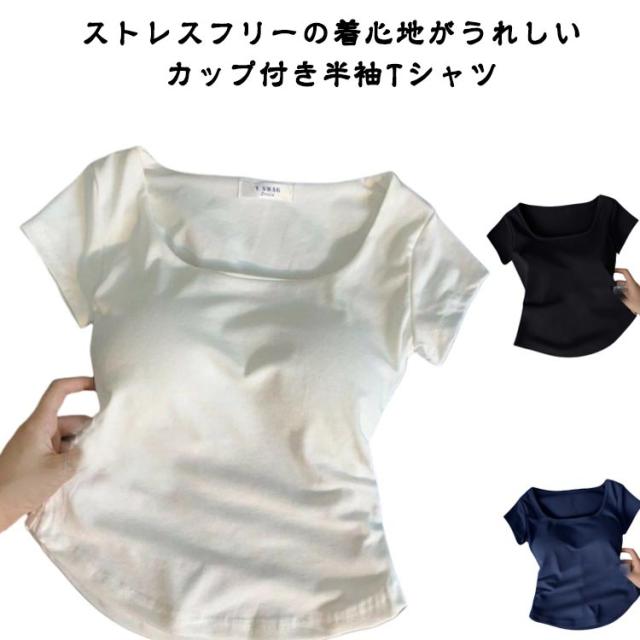 カップ付き Tシャツ ショート丈 吸水速乾 レディース ルームウェア トップス Tシャツ 半袖 春夏 夏 ブラトップ カップ付き 無地 パジャマ ストレッチ 薄手 肌着 下着 無地 速乾 Tシャツブラ 伸縮性 Tシャツ ブラトップ スポーツ