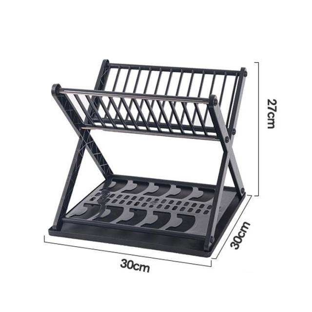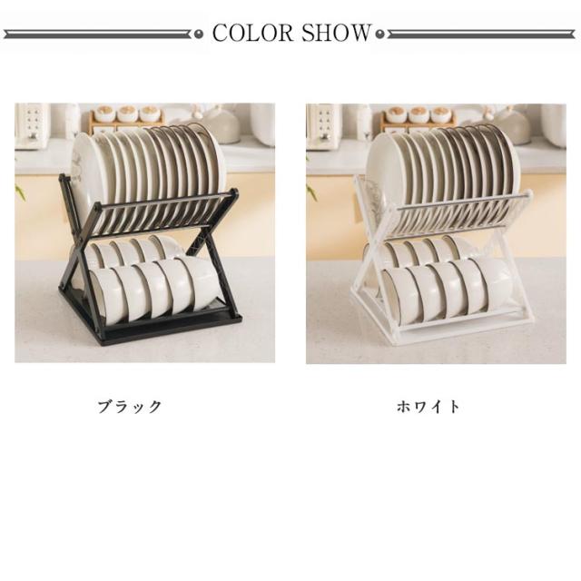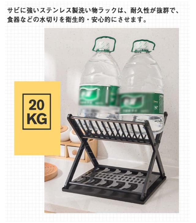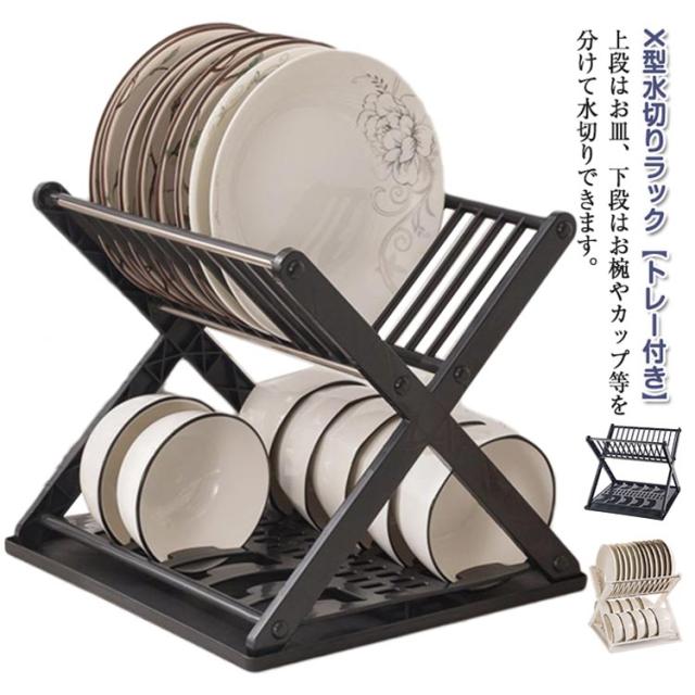 水切りラック 2段 スリム 水切りかご 折りたたみ ステンレス X型 水切り棚 ディッシュラック お皿立て コップ立て ボトルスタンド 水切りスタンド 受け皿 トレー付き 食器棚 水切りカゴ お皿 お椀 カップ 水筒 水切り 乾燥 【送無】