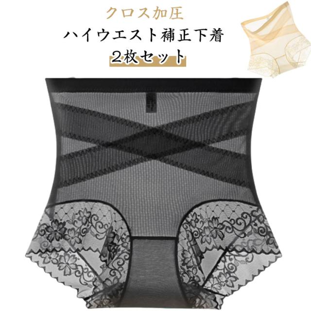 【2枚セット】ハイウエストショーツ 補正下着 クロス加圧 ガードル レディース 十字網状デザイン ハイウエスト 補正下着 お腹引き締め ヒップアップ補正下着 美尻 シームレスデザイン 薄手 ストレッチ ヒップアップ 通気 速乾 シェイプアップショーツ