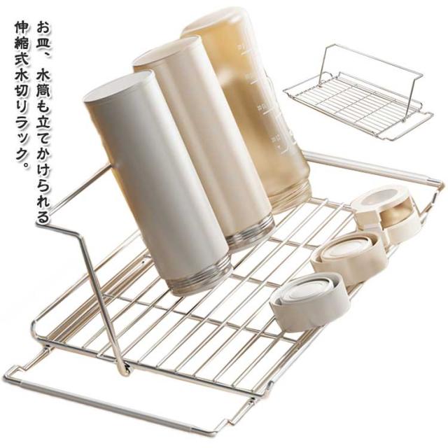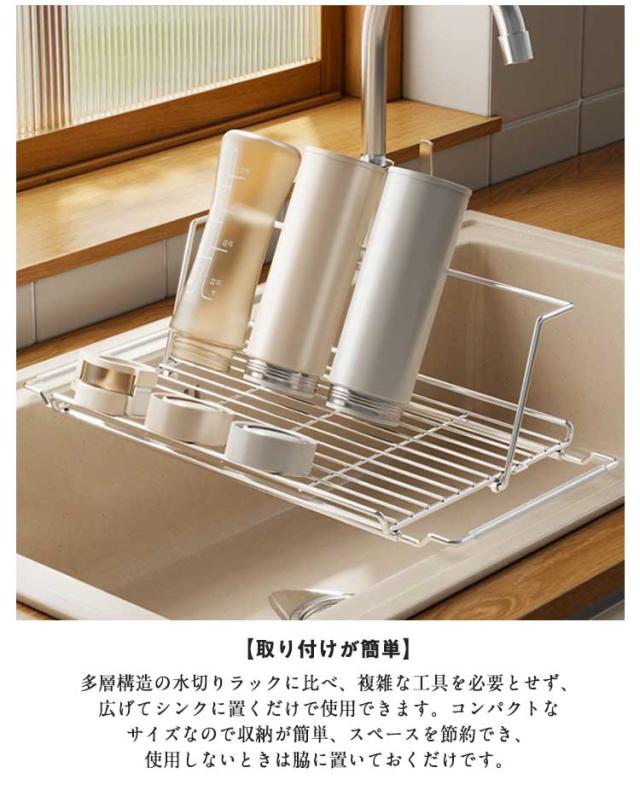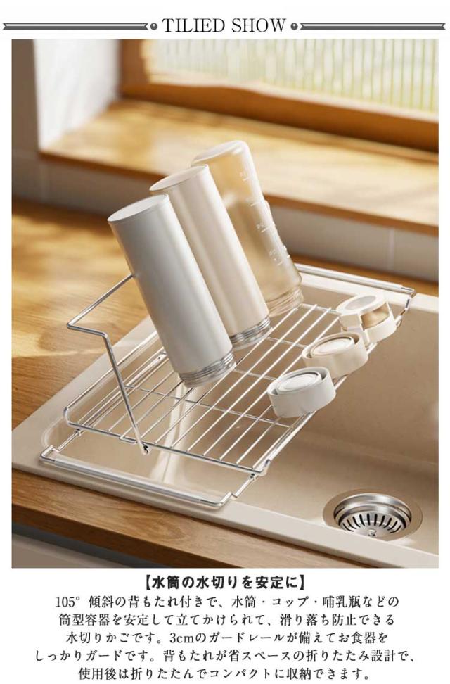水切りラック シンク上 折りたたみ 伸縮 水切りかご お皿 水筒 立てかけられる 底面フロート 食洗器対応 ステンレス スリム ボトルスタンド お皿立て 水筒立て 乾かせる カップホルダー 水切りスタンド コップスタンド 食器干し