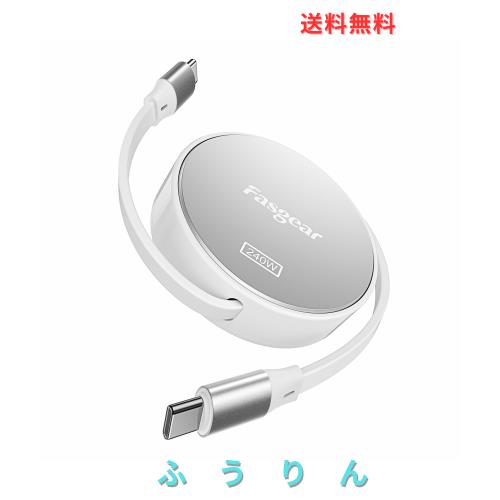 Fasgear 240W USB C - USB Cケーブル 1m 100W USB C充電器用 巻き取り式 5A 急速充電タイプCコード [4本伸縮] i-Phone 15 Pro, i-Pad Pro