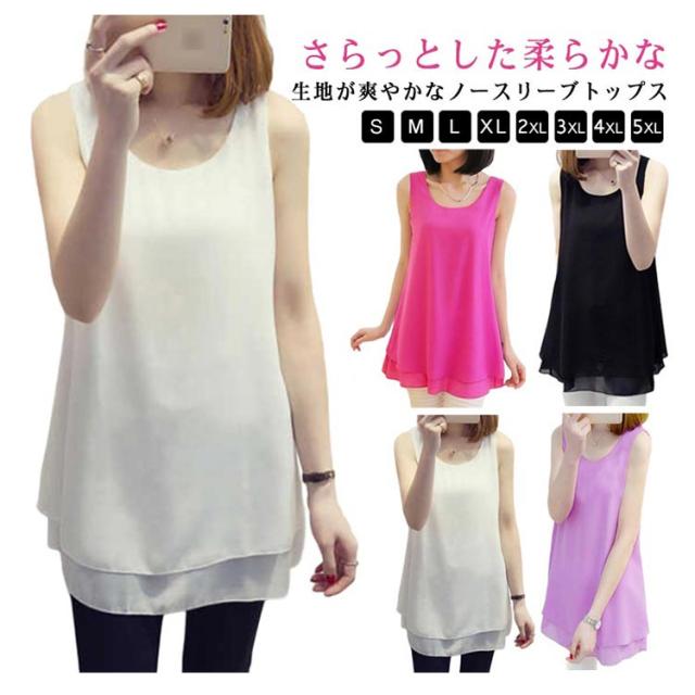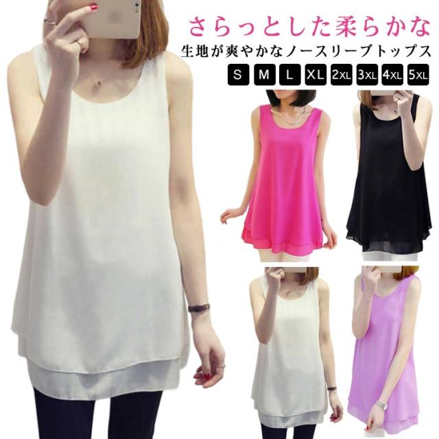 4color×8size レディース ロング丈 シフォンタンクトップ ブラウス 軽量 シフォン タンクトップ プルオーバー きれいめ ノースリーブ インナー 可愛い トップス 夏 オシャレ 大きいサイズ ゆったり ロングタンクトップ おしゃれ カジュアル エレガント