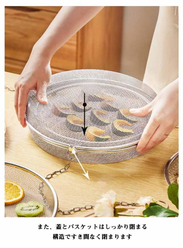 | 【2段】【ドライフルーツバスケット】 簡単に自家製ドライフルーツ! 切った食材を並べて干すだけで、ドライフルーツ、干し野菜、干物が簡単に作れます 乾燥させると旨みや栄養価がアップするだけでなく、日持ちするので保存食としても便利です 野菜・フルーツ・干物を乾燥させ、驚きの健康食へ。 2段式でたっぷり干せる! フタを取り外せるので、横から入れるタイプの干し網と比べて食材を並べやすいです 付きですので、安心して外に干せます。 また、蓋とバスケットはしっかり閉まる構造ですき間なく閉まります 本体のアミ目が細かいので食材に虫がつきません 物干し竿に掛けられる 引っかけ部分が長く多少風が吹いても外れません ステンレス製なので、臭い移りもなく清潔。 | |