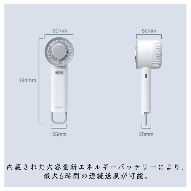 | SNSで話題の冷却ハンディファン! 1800mAh 大容量バッテリー 内蔵された大容量新エネルギーバッテリーにより、最大6時間の連続送風が可能。 卓上にしっかり固定できるスタンド付き 小さなバッグにも収まる超コンパクト設計、 重量は約140g(リンゴ1個分)の超軽量タイプ 。 真夏の炎天下でも、素早く涼しさと冷たさをお届け 5枚の羽根で強い風力を実現し、高品質なモーターで回転時の音を最小限に抑えた超静音設計で、睡眠時でも、音を気にせず快適に眠れる環境を提供します。 | |