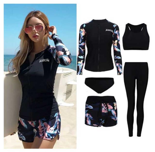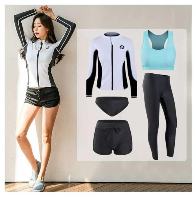 水着 パット入り フィットネス水着 長袖 レディース カップル水着 ビキニ ショートパンツ 上下5点セット ノンワイヤー ラッシュガード フィットネス水着 ママ水着 体型カバー レギンス メンズ 水着 水陸両用 スポーツウェア 吸汗速乾 ペア ジップアップ
