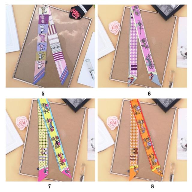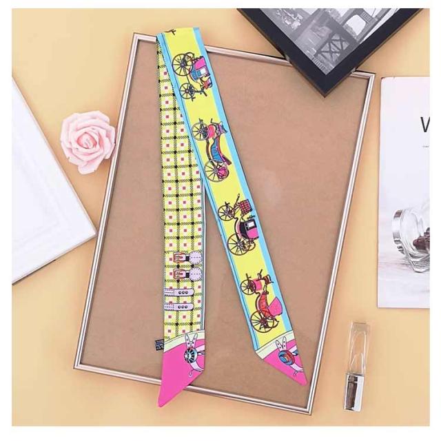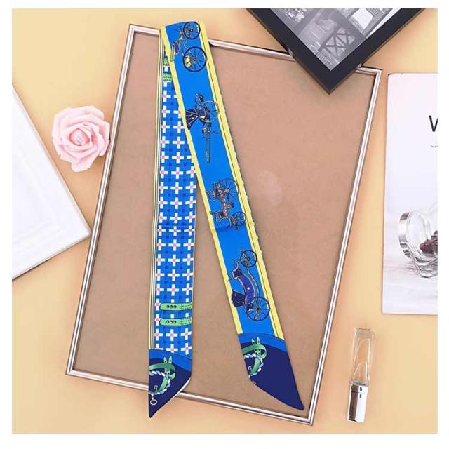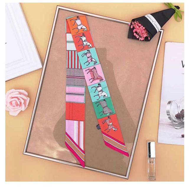 スカーフ バッグスカーフ カバンスカーフ リボンスカーフ シルク調 オシャレ 可愛い 持ち手保護 馬柄 ロングスカーフ バッグアクセサリー おしゃれ 高見え 高級感 光沢感 送料無料