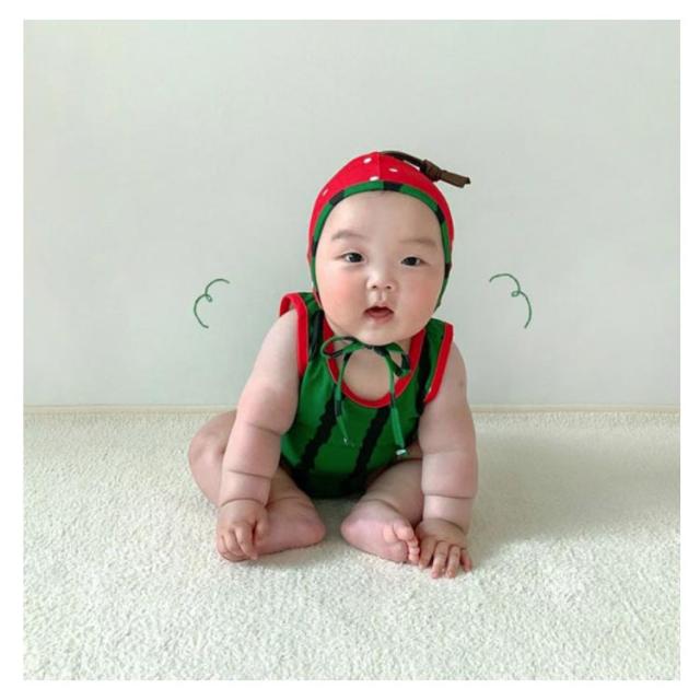 73 キッズ 子供 女の子 スイカ キャップ 66 ベビー ベビー 80 男児 帽子 水着 いちご 帽子付き ロンパース リンクコーデ フルーツ 果物 セット すいか お揃い プール 海 マリンレジャー 赤ちゃん 幼児 女児 90cm 出産祝い ギフト ワンピース 幼児用水着