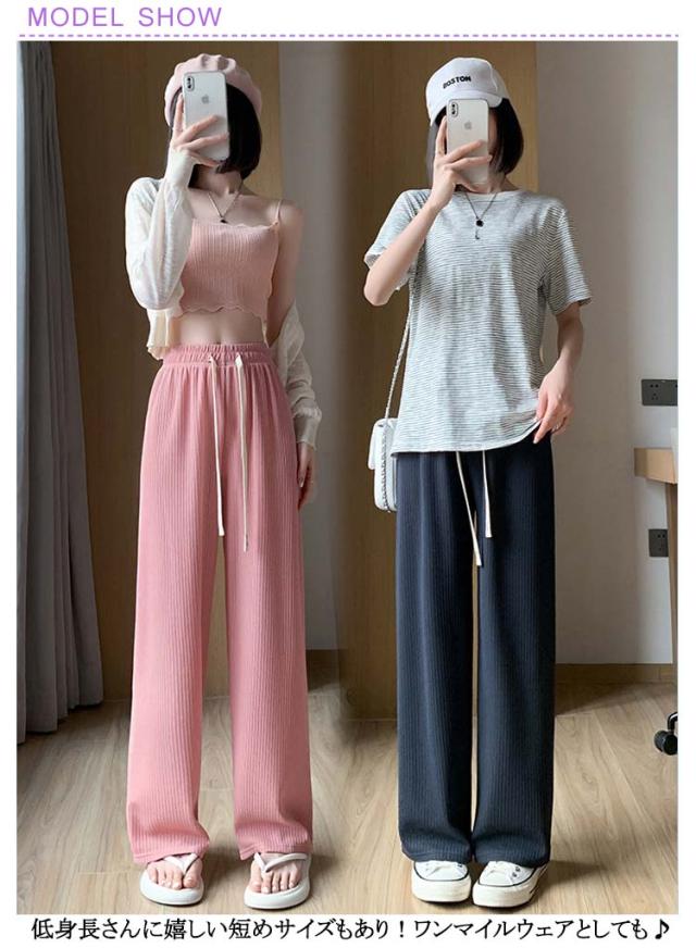 ワイドパンツ 春物 リラックスパンツ 冷感 春夏 レディース 春服 レディース ボトムス パンツ 低身長 高身長 夏物 ウエストゴム ワイドパンツ ボトムス 体型カバー