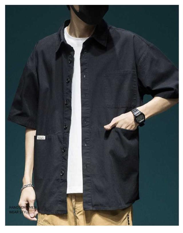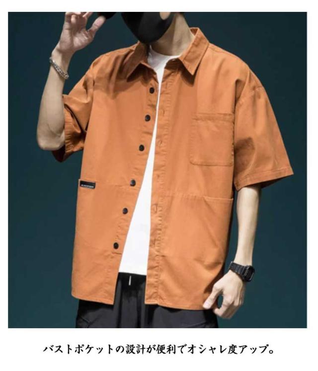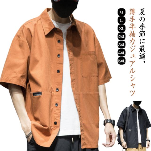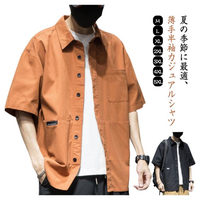 カジュアル スリムシャツ 半袖 ゆったり 夏服 メンズ カジュアルシャツ 羽織 無地 開襟シャツ トップス 無地シャツ 夏 シャツ シンプル 薄手 大きいサイズ カジュアルシャツ お兄系 父の日 プレゼント 胸ポケット 通勤 ビジネス 大人 男性