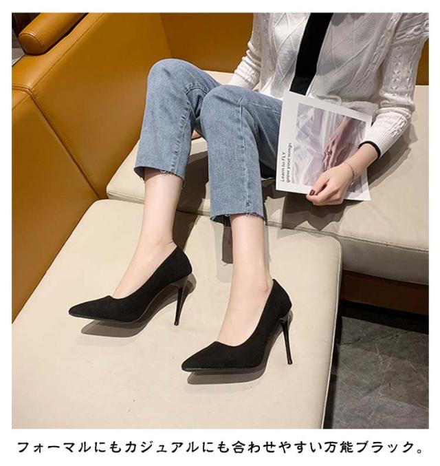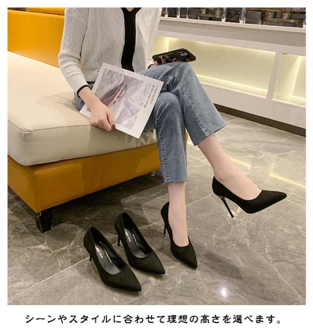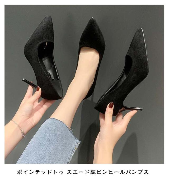 ピンヒール パンプス ポインテッドトゥ セレモニー レディース ハイヒール オフィス パンプス 通勤 ヒール6cm/8cm/10cm フォーマル リクルート ポインテッドトゥ スエード調 卒業式 結婚式 黒 ブラック
