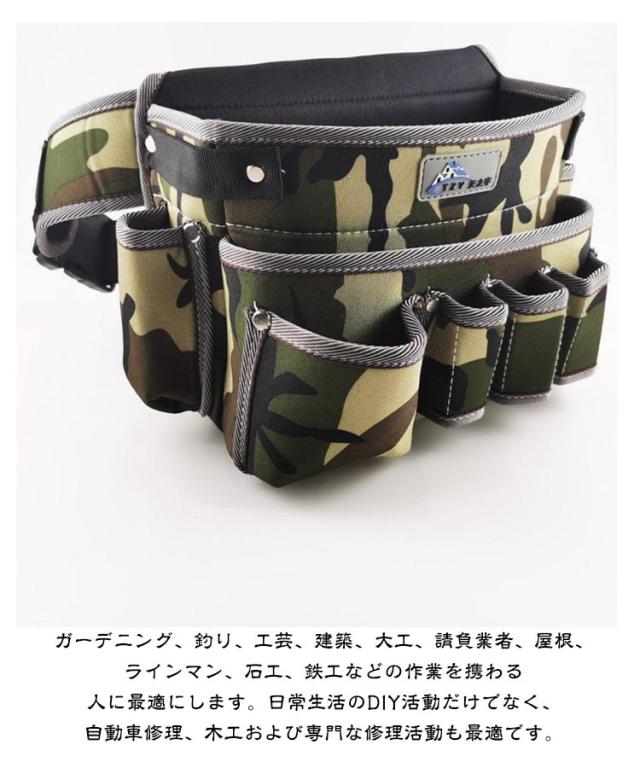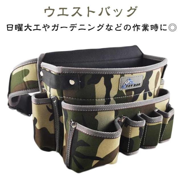 ウエストバッグ ウエストポーチ 大容量 ツールバッグ 建築 仕事用 工具バッグ 送料無料 多ポケット 大容量 道具 マチ付き 工具収納 かばん 工具差し入れ 収納バッグ 腰袋 撥水 修理 建設 大工 工事 工具 鉄工 電工 内装 家事 掃除 迷彩柄 おしゃれ 工具袋