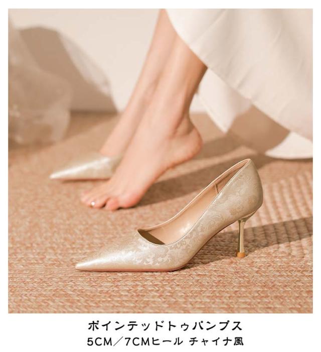 | ポインテッドトゥパンプス 5cm/7cmヒール チャイナ風 2種類のヒール高から選べる 普段使いにぴったりな5cmと、美脚効果の高い7cmをラインナップ。 ポインテッドトゥ ×ピンヒール 足元から上品さを演出。スタイルアップ効果も◎ 浅口デザインで足元をすっきり魅せる 華奢な足首とのコントラストで女性らしさを引き立てます。 通勤/お出かけ/パーティー/フォーマルイベント/特別な日のおしゃれに | |
