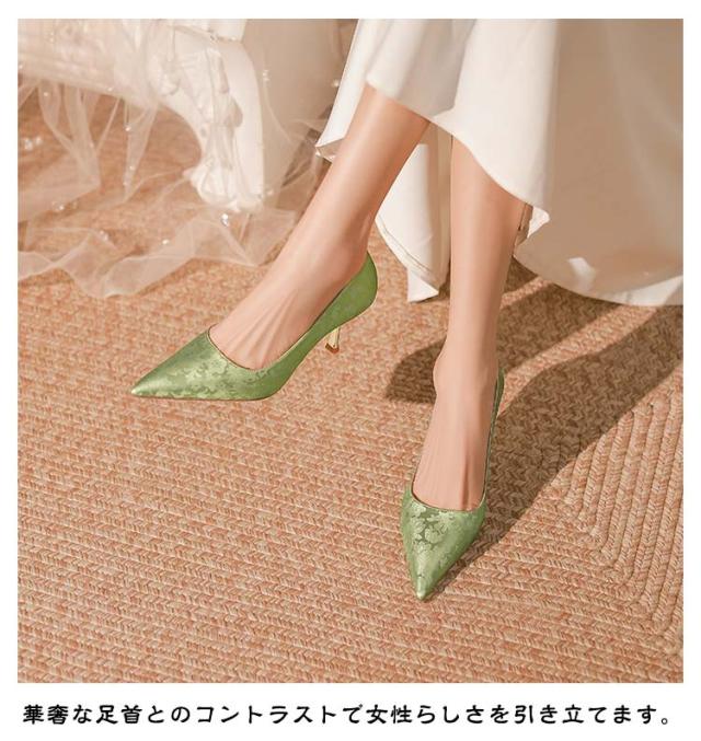 パンプス レディース 美脚効果 ポインテッドトゥ ピンヒール チャイナ風 5cmヒール 靴 チャイナ風 7cmヒール エレガント おしゃれ きれいめ 結婚式 セレモニー パーティー グリーン
