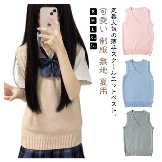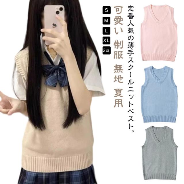 シンプル Vネック 薄手 ニットセーター 夏用 ノースリーブ 無地 秋 JK制服 学生 通学 ニットベスト 中学 スクールベスト 春 夏 女子高生 冬 無地 レディース スクールベスト 可愛い