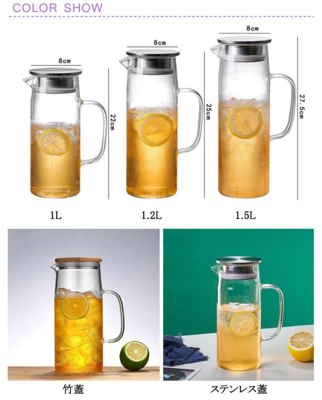 ガラスピッチャー 耐熱 1000ml 1200ml 1500ml ガラスポット ガラスケトル ピッチャー 1500ml 麦茶ポット 耐熱ガラス ガラスピッチャー ガラス 大容量 直火 ホウケイ酸ガラス お茶ポット 冷水ポット冷水筒 麦茶入れ