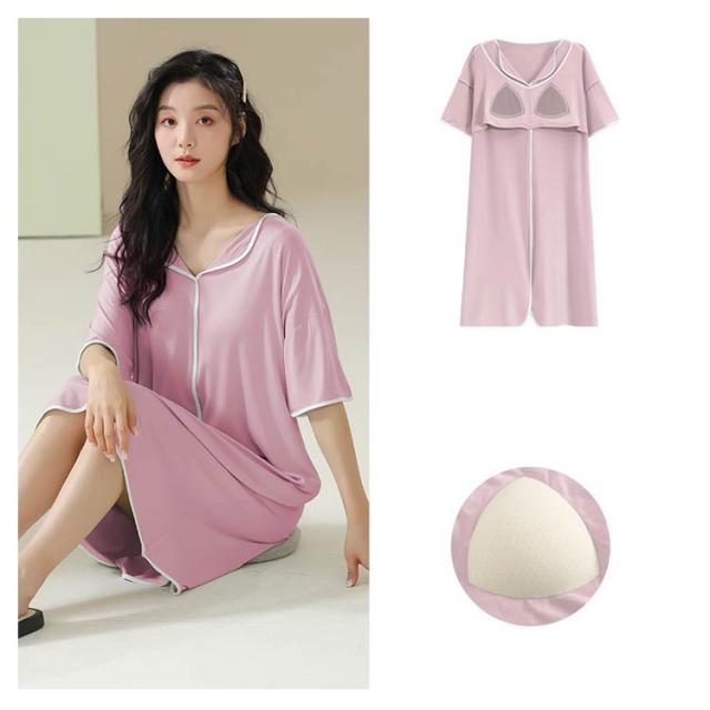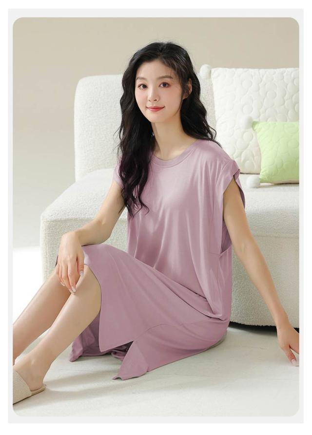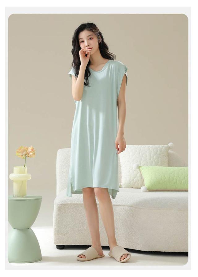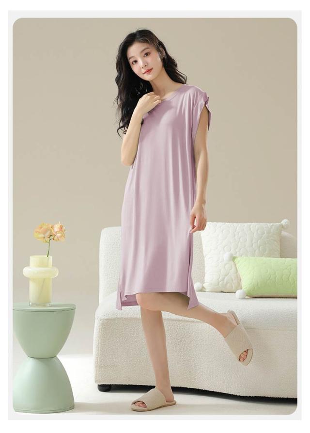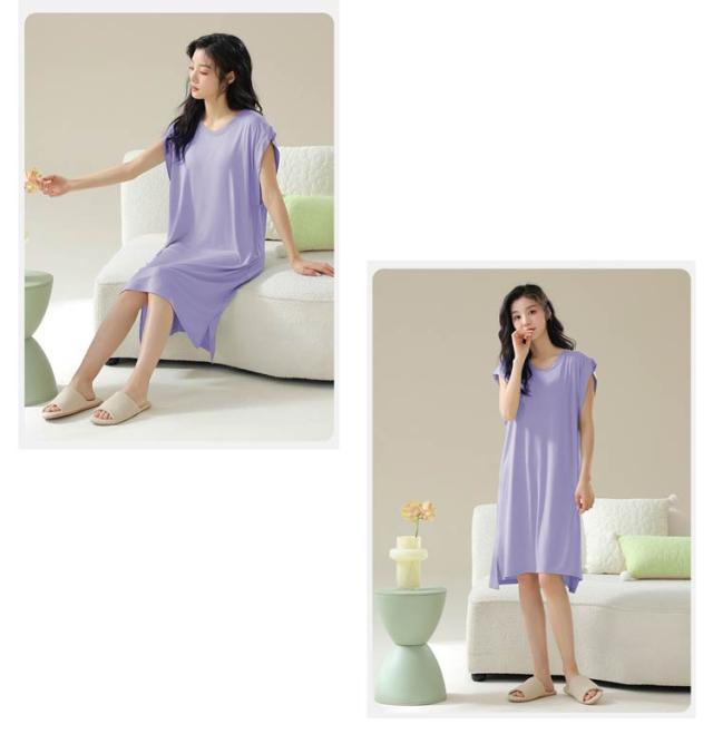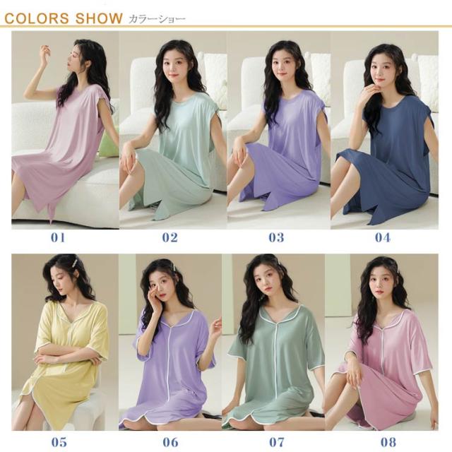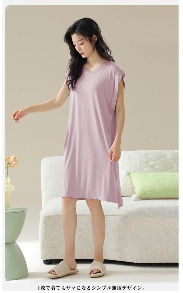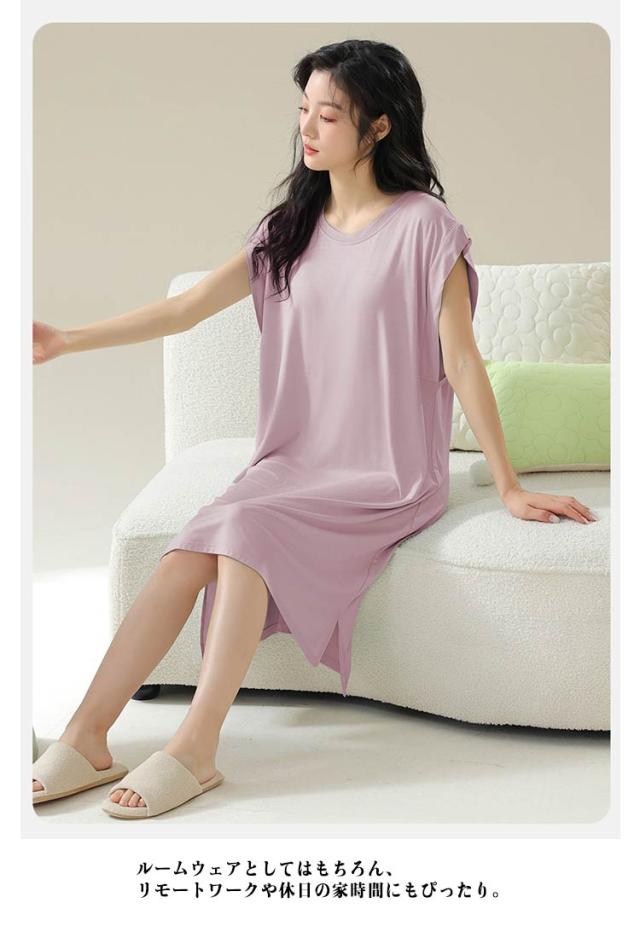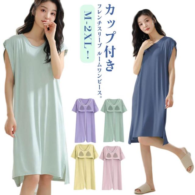 送料無料 ルームワンピース 大人 カップ付き レディース ナイトウェア ワンピース パジャマ モダール 部屋着 ノースリーブ ルームウェア フレンチスリーブ ネグリジェ 女性用 ゆったり 寝巻き 春 夏 涼しい 柔らかい 快適 大きいサイズ 春 夏 薄手 無地