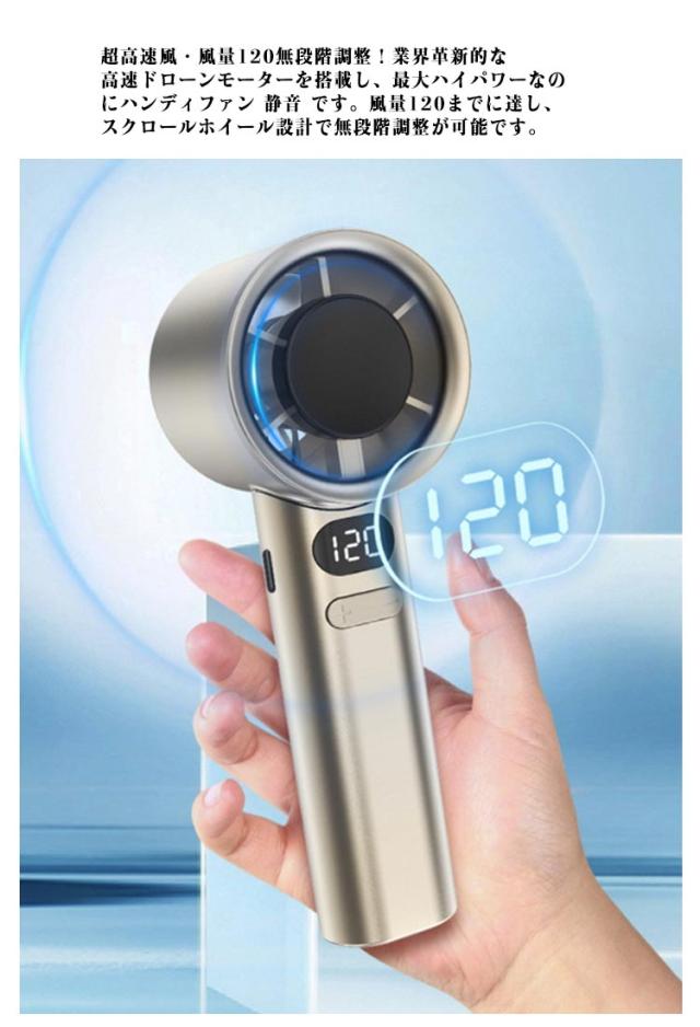 ハンディファン 卓上 USB充電式 扇風機 120段階風量 手持ち扇風機 1200mAh 携帯扇風機 軽量 小型 静音 ポータブル扇風機 ミニ扇風機 卓上扇風機 ハンズフリー LEDデジタル表示 強力送風 急速冷感 涼しい 軽量 熱中症対策 暑さ対策 アウトドア