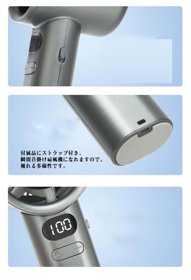 | 手持ち 扇風機!暑い夏を快適に愉しむための定番アイテム、ハンディファン。気軽に手軽に、風を持ち歩こう。手持ち用扇風機、または卓上扇風機と、自由に変更できます。 付属品にストラップ付き、瞬間首掛け扇風機になれますので、優れる多様性です。 軽量ミニサイズ。室内外問わずに活躍できる小型扇風機です。 USB充電式!1200mAhバッテリーを内蔵し、やパソコン、USB充電器に接続すると充電できる扇風機です。 超高速風・風量120無段階調整!業界革新的な高速ドローンモーターを搭載し、最大ハイパワーなのにハンディファン 静音 です。風量120までに達し、スクロールホイール設計で無段階調整が可能です。 | |
