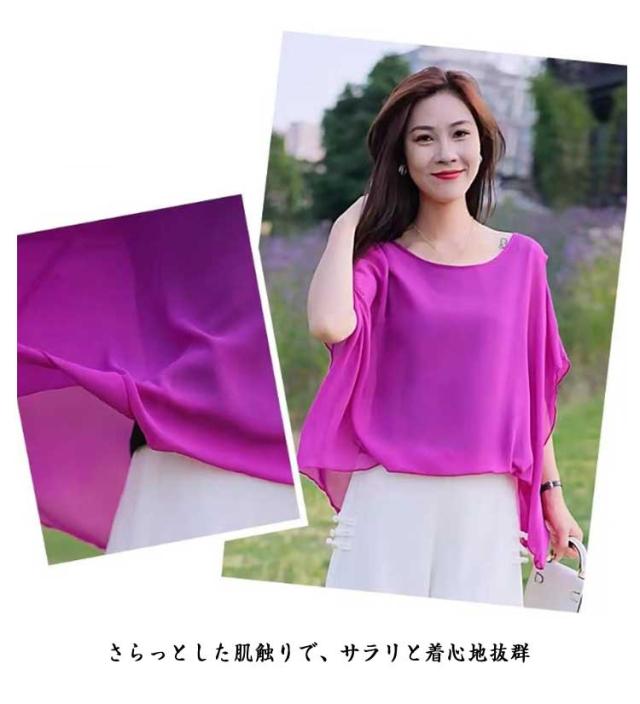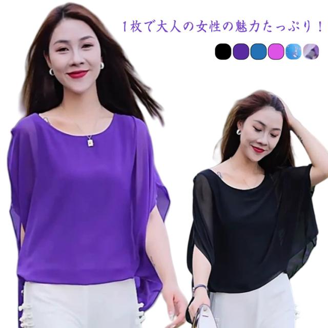 ブラウス シフォン シフォン チュニック 二次会 無地レース フリル袖カットソー レディース Vネック シンプル 春 夏 結婚式 パーティー シャツ トップス フォーマル 薄手