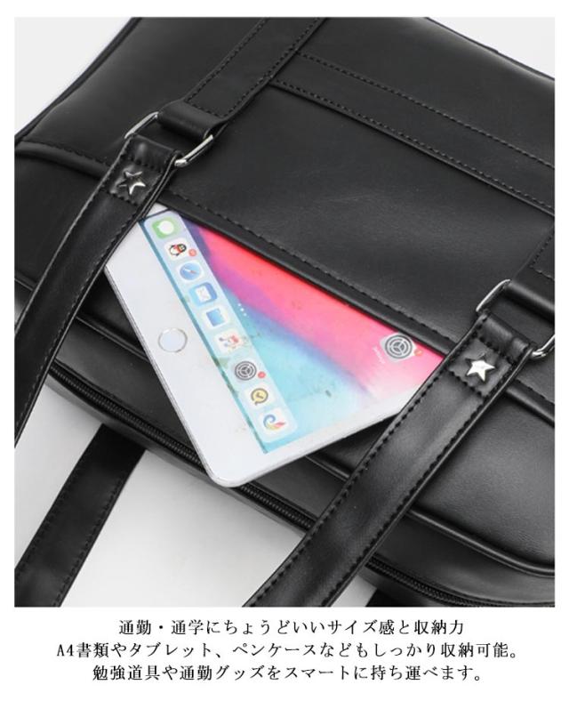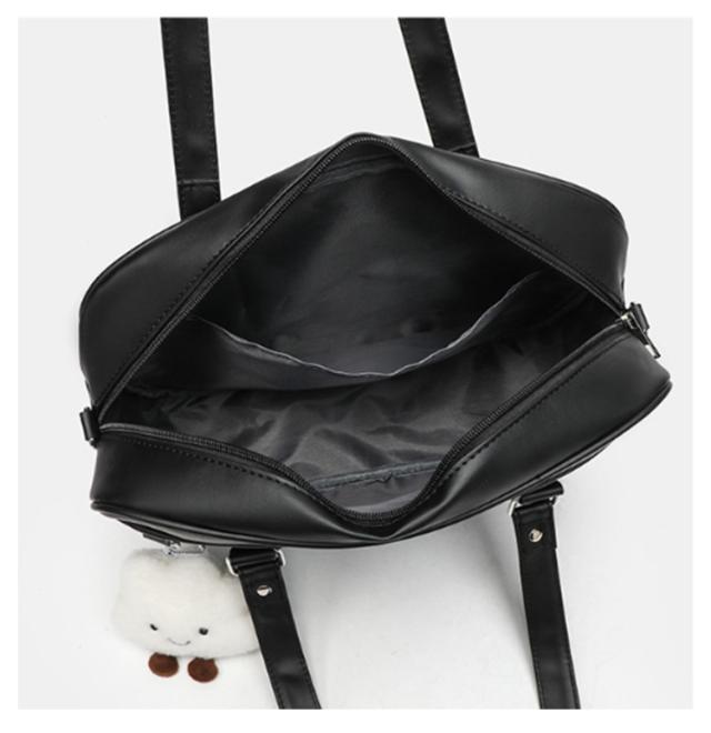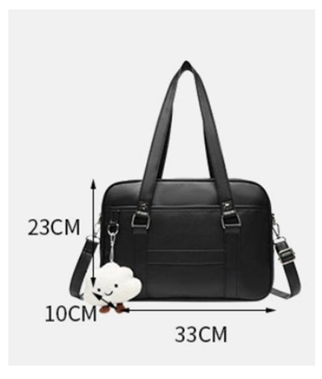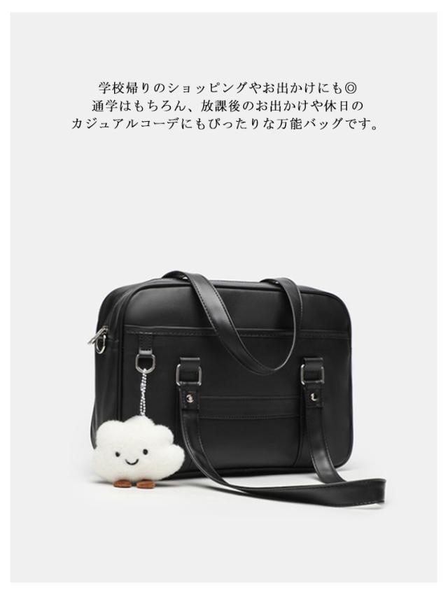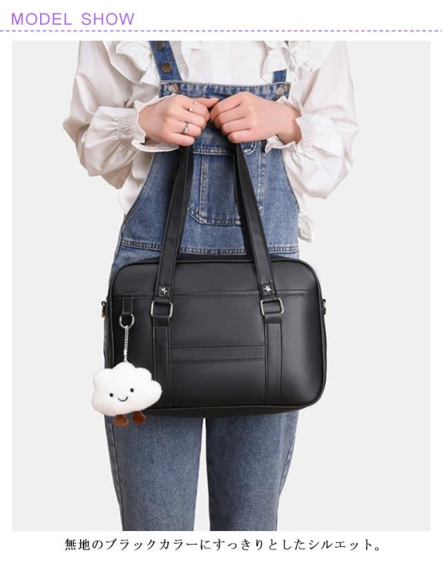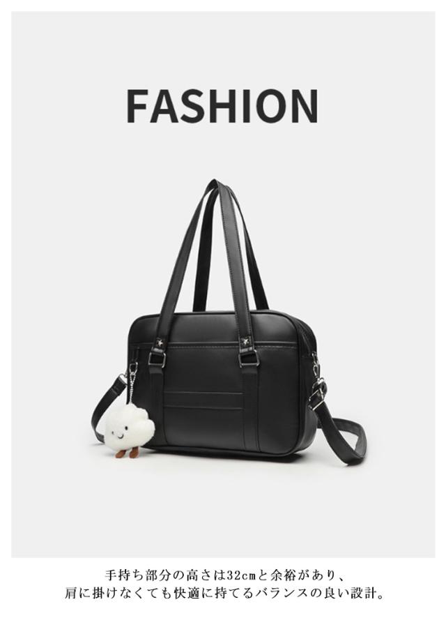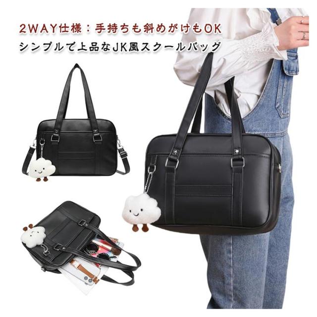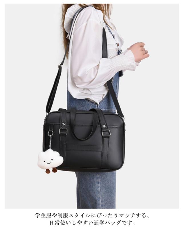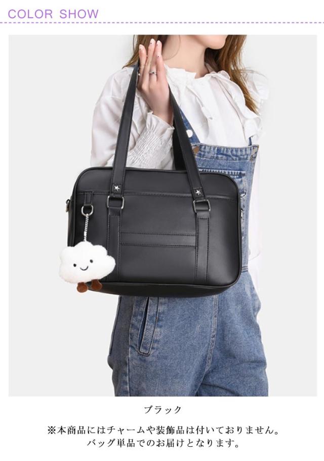 | 2WAY仕様:手持ちも斜めがけもOK シンプルで上品なJK風スクールバッグ 無地のブラックカラーにすっきりとしたシルエット。 学生服や制服スタイルにぴったりマッチする、日常使いしやすい通学バッグです。 通勤・通学にちょうどいいサイズ感と収納力 A4書類やタブレット、ペンケースなどもしっかり収納可能。勉強道具や通勤グッズをスマートに持ち運べます。 学校帰りのショッピングやお出かけにも◎ 通学はもちろん、放課後のお出かけや休日のカジュアルコーデにもぴったりな万能バッグです。 取り外し・長さ調節可能なショルダーストラップ(最長120cm)付きで、シーンに合わせて手提げ・肩掛け・斜めがけに対応できます。 手持ち部分の高さは32cmと余裕があり、肩に掛けなくても快適に持てるバランスの良い設計。 ※本商品にはチャームや装飾品は付いておりません。バッグ単品でのお届けとなります。 | |