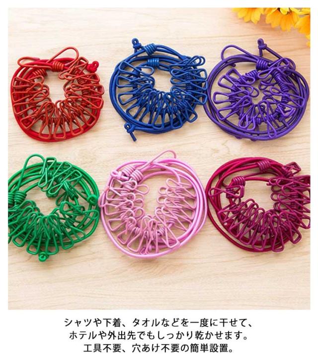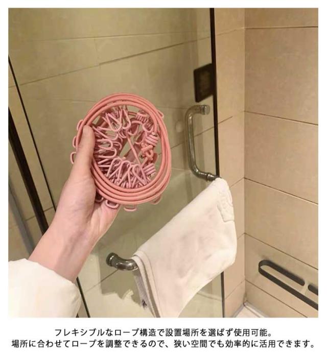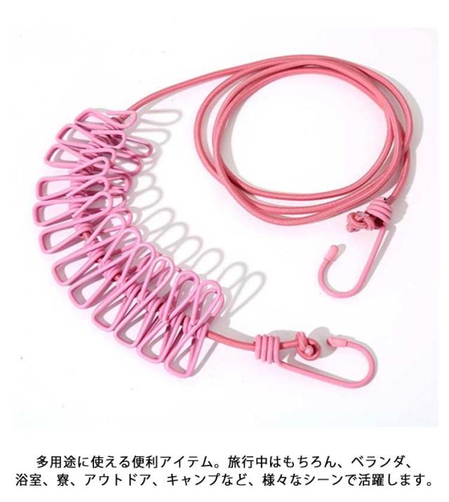 室内物干し 携帯用物干し フック付きロープ 防風 洗濯バサミ対応 洗濯ばさみ付きロープ 物干しロープ 旅行グッズ ホテル用物干し 宿泊用グッズ 洗濯ロープ 便利グッズ 洗濯用品 アウトドア 衣類干し 室内干しグッズ